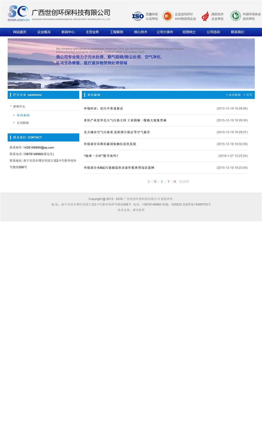 廣西世創(chuàng)環(huán)??萍加邢薰究偛孔溆诰G城-廣西南寧,位于廣西南寧國家高新技術(shù)產(chǎn)業(yè)開 發(fā)區(qū),專業(yè)從事煙氣處理工程、工業(yè)廢水處理工程、環(huán)保技術(shù)研究開發(fā)、環(huán)保設(shè)備制造銷售、生物除臭工程、設(shè)備安裝工程、工程咨詢設(shè)計的高新技術(shù)企業(yè),具有環(huán)境工程專業(yè)承包資質(zhì)及國家建設(shè)主管部門頒發(fā)的安全生產(chǎn)許可證等資質(zhì),