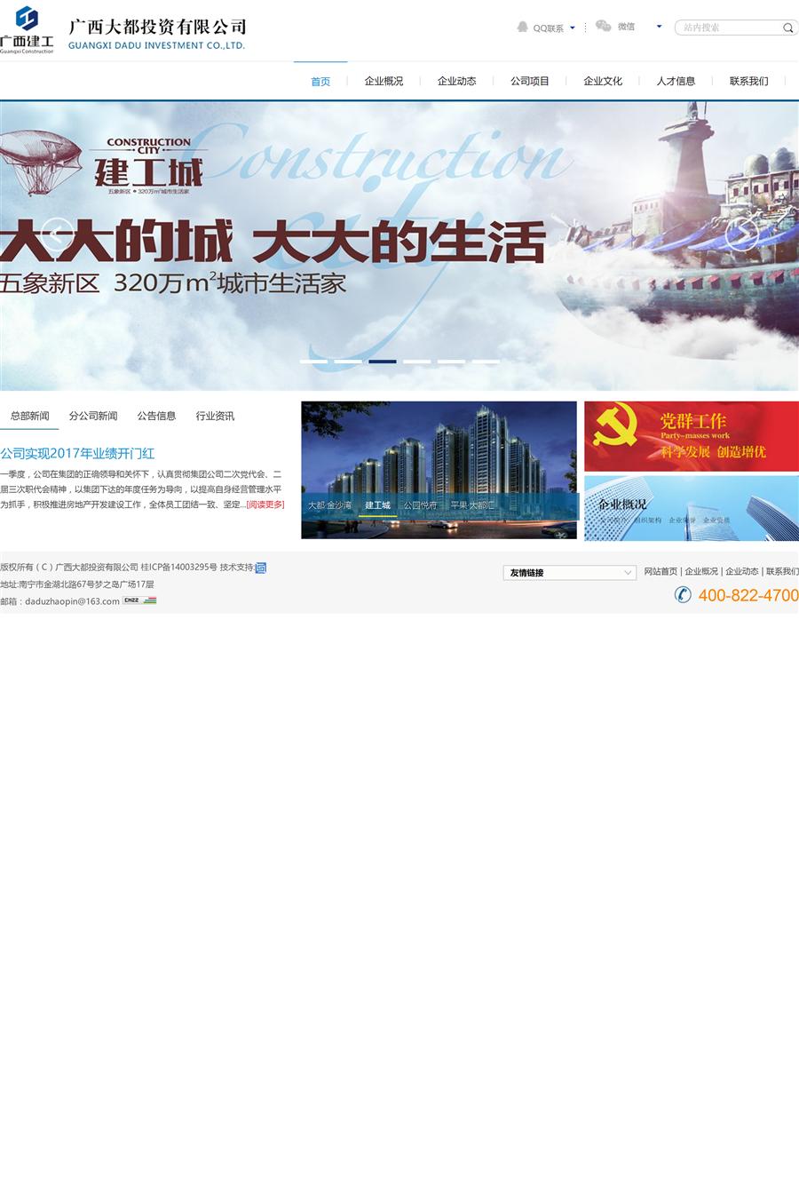 廣西大都投資有限公司成立于2010年12月29日,是中國(guó)500強(qiáng)企業(yè)-廣西建工集團(tuán)有限責(zé)任公司重點(diǎn)打造的一家以房地產(chǎn)開(kāi)發(fā)為主業(yè)的多元化投資企業(yè),擁有國(guó)家二級(jí)房地產(chǎn)開(kāi)發(fā)資質(zhì)。