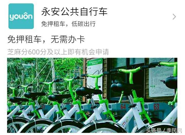 永安行與付出寶芝麻信譽(yù)達(dá)到協(xié)作,用戶在綁定身份信息后,只需芝麻信譽(yù)分超越600,就可以“無押金”租車。永安行的這一做法切中了同享單車押金高、管理混亂等痛點(diǎn)。
